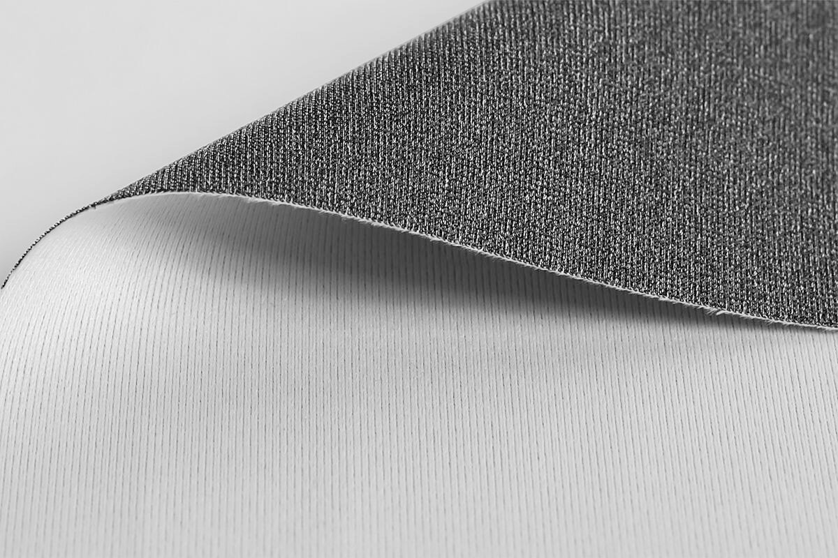 Notre nouveau tissu adopte une approche différente : une structure tricotée intégrant un fil gris au dos, permettant une excellente gestion de l’opacité sans aucune enduction.
